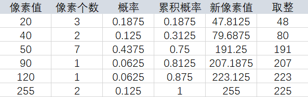用直白的语言来描述:把像素按从小到大排序,统计每个像素的概率和累计概率,然后用灰度级乘以这个累计概率就是映射后新像素的像素值。