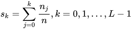 直方图均衡化的作用是图像增强,这种方法对于背景和前景都太亮或者太暗的图像非常有用。直方图是一种统计方法,根据对图像中每个像素值的概率进行统计,按照概率分布函数对图像的像素进行重新分配来达到图像拉伸的作用,将图像像素值均匀分布在最小和最大像素级之间。其中LLL 为灰度级。