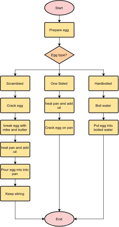 该流程图用于教导和说明如何以各种方式向读者烹饪鸡蛋。流程图包含决策和流程数。