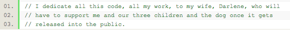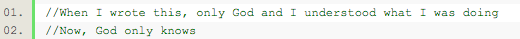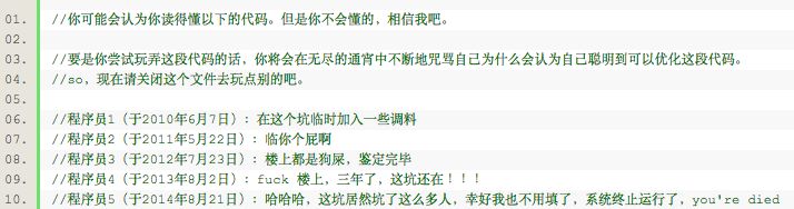 细数那些代码中的奇葩注释 开发者周dev_weekly 2019-02-27 187 阅读1分钟 最近的“穷逼VIP”事件想必大家有所耳闻!详细的我就不说了大家可以去看看,当然了出于好奇,我在网上也看到了很多的奇葩的程序员写的注释来看看吧!
