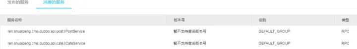 - 可以看到我发布的服务和消费的服务