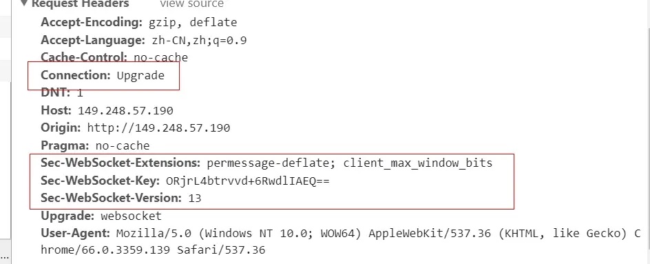 根据 RFC6455 协议规定 WebSocket 只需要一次握手就可以完成,所以我们只需要分析第二次的http 握手请求,A请求应该是使用的框架层面自己实现。