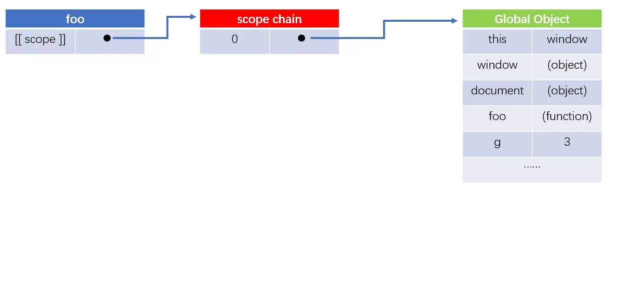 - 1.在foo()创建的时候,foo函数被自动赋予了[ [ scope