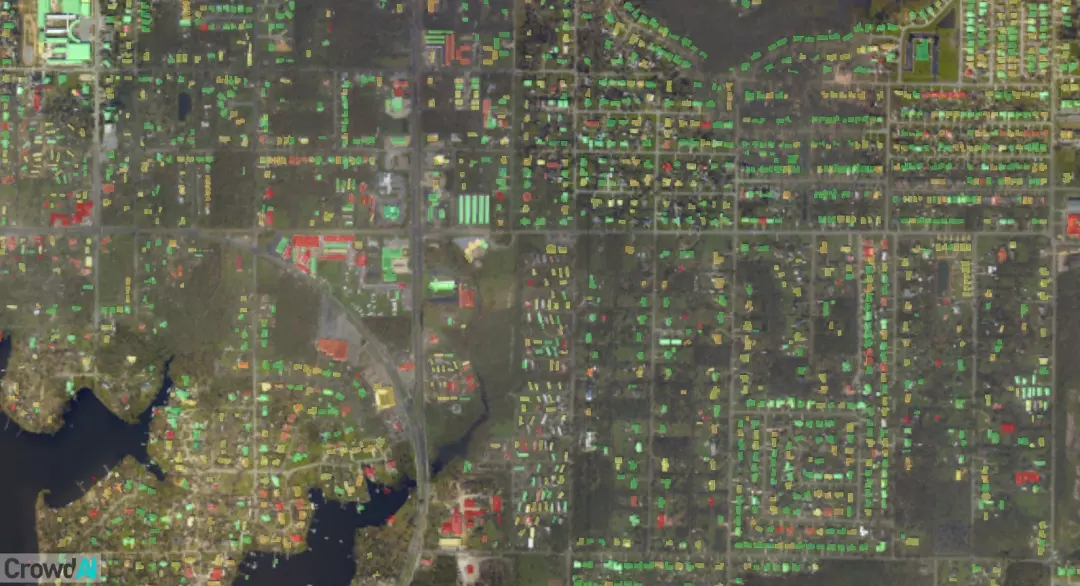 在去年飓风迈克尔侵袭之后,CrowdAI 与电信供应商 WOW 合作,评估佛罗里达州巴拿马城的建筑物损坏情况。根据 NOAA 提供的城市卫星图像,他们提供的数据帮助 WOW ,将工作人按照受灾程度进行合理的部署,以实现快速的恢复。