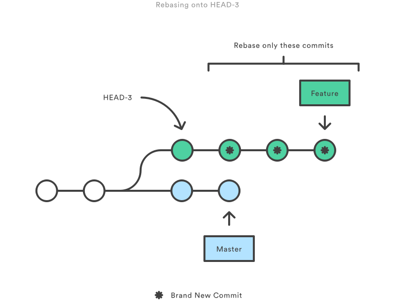 调用git rebase时,有两个基(base)选项:feature的父分支(例如master),或feature中的历史提交。我们在Interactive Rebasing部分看到了第一个选项的示例。当你只需要修复最后几次提交时,后一种选择很好。例如,以下命令仅针对最后3次提交的交互式rebase。