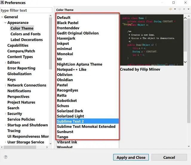 重启后,菜单Windows->Preferences->Color Theme, 现在多出来这么多颜色主题(Color Theme)了,相信总有一款适合您的。赶快试试吧!