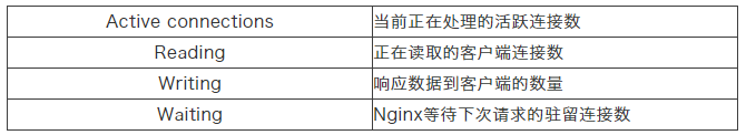 因我们更关心当前Nginx运行情况,不对已处理的请求做过多关注,所以我们只对如下指标进行采集监控: