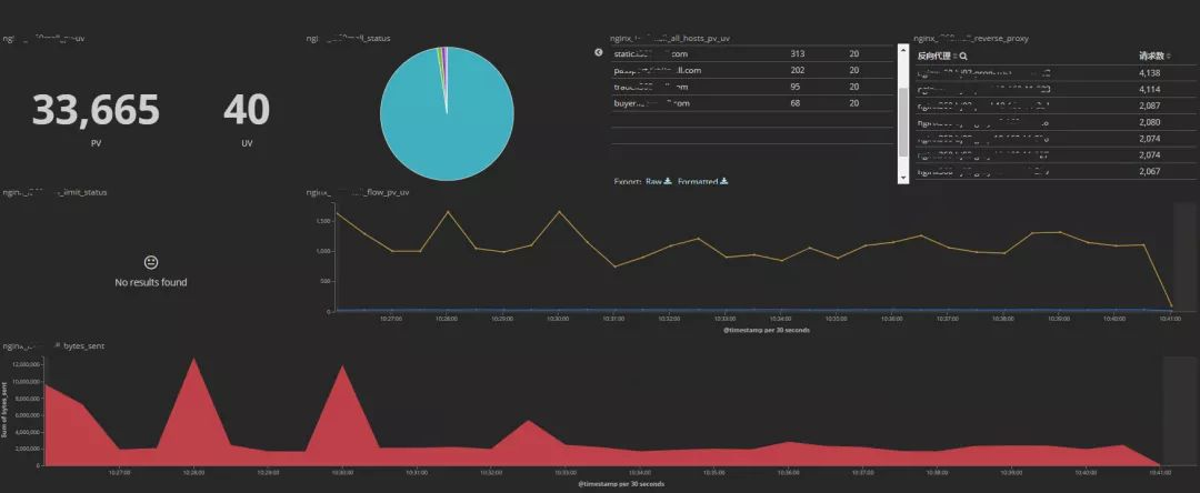 针对以上四个监控黄金指标,搭建的ELK栈仪表盘,设置常用的Nginx日志过滤规则,以便可以快速定位分析问题:
