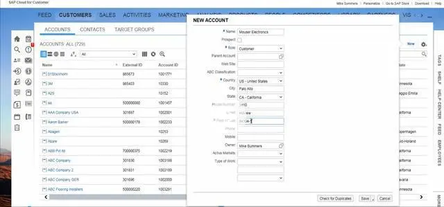 C4C里创建一个Account:Mouser Electronics