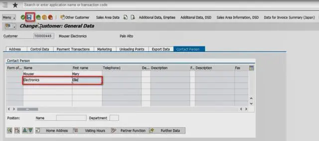 在C4C里保存Account,自动同步到ERP中,在ERP生成Account。然后在ERP里给这个Account维护Sales Area数据,包括Sales Organization,Distribution Channel和Division: