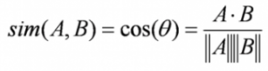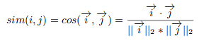 基于内容的过滤算法找到了轮廓向量与项目向量夹角的余弦,也就是余弦相似度。假设A是轮廓矢量,B是项目矢量,那么它们之间的相似性可以按如下公式计算: