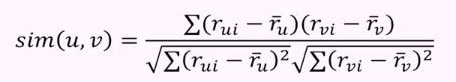 对于预测,我们需要用户u和v之间的相似性。这时可以利用皮尔逊相关性。