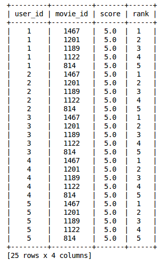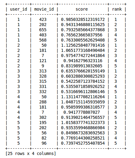 根据在-1到1之间的余弦值,可以将电影按降序排列,并且采用下面两种方法中的一种用于推荐: