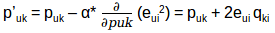 self . Q [ j , : ] += self . alpha * ( e * self . P [ i , : ] - self . beta * self . Q [ j , : ])