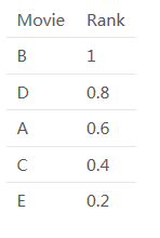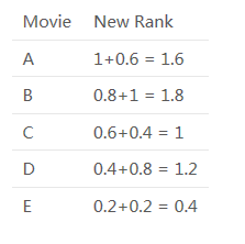 因此,一个混合推荐引擎将结合这些排名,并根据综合排名做出最终的推荐。合并后的排名是: