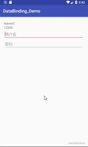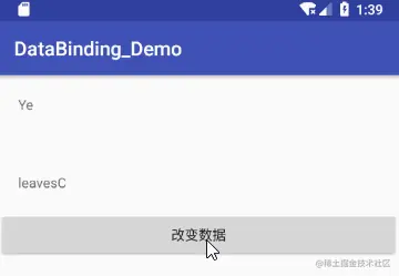 通过 @{userInfo.name} 使 TextView 引用到相关的变量,DataBinding 会将之映射到相应的 getter 方法