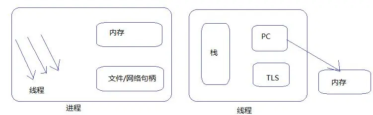 我们可以通过进程与线程的结构来看看它们的区别,如图所示。