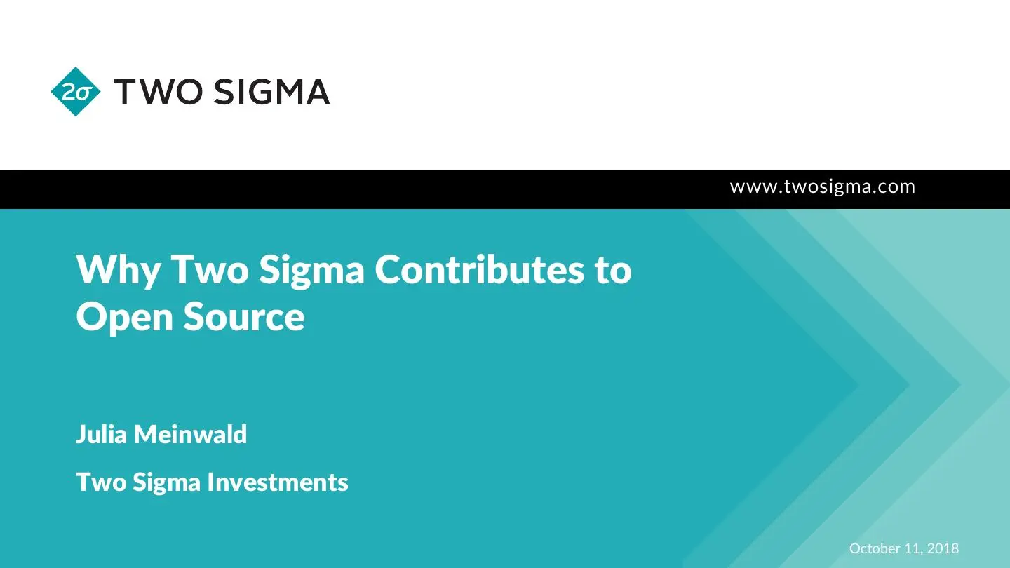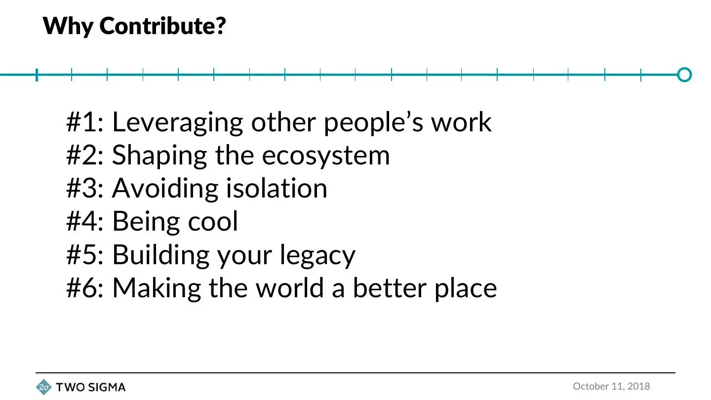 The presentation will explain why Two Sigma, a company in a space notorious for protecting IP, thinks it's important to contribute to the open source community. I'll talk about the evolution of our thinking and policies over the past five years, and make a case for why other companies should make a commitment to the open source ecosystem.