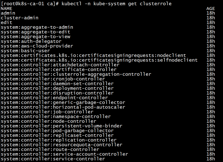 #可以通过下面命令查询clusterrole列表
