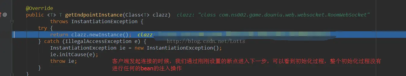 其实不是不能注入,是已经注入了,但是客户端每建立一个链接就会创建一个对象,这个对象没有任何的bean注入操作,下面贴下实践