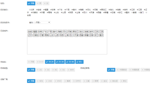 在东方头条广告投放平台,广告主对每条投放内容都能设置定向,且设置定向的标签种类非常丰富,除了有性别、地域、年龄段、消费能力等,还有兴趣定向,更可以根据行业类别进行设定。