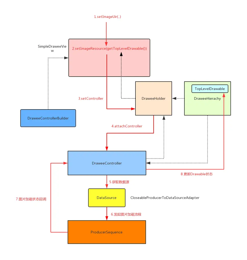 用下面这张图总结从SimpleDraweeView->DraweeController的图片加载逻辑: