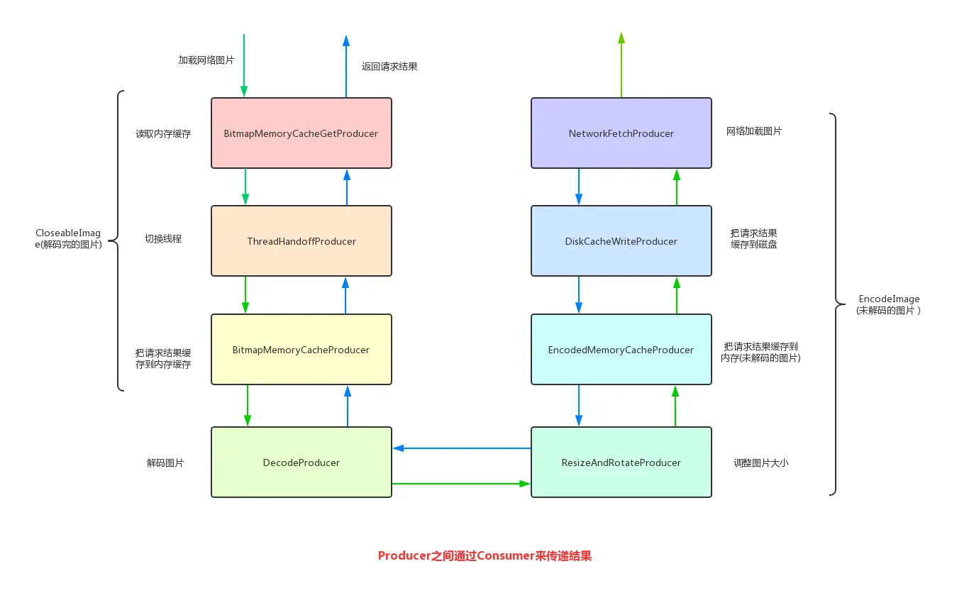 Fresco中有关图片的内存缓存、解码、编码、磁盘缓存、网络请求都是在这一层实现的,而所有的实现的基本单元是Producer,所以我们先来理解一下Producer: