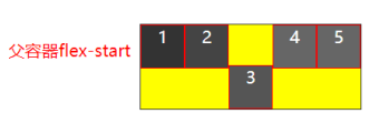 6、align-self ,和上面父容器的align-items是类似的属性,他可以为某个子项定义不一样的排列方式,也就是可以覆盖父容器的aligh-items的属性,看一下demo图