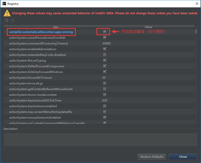 具体步骤: 敲击 Ctrl + Shift + Alt + / 然后双击Shift搜索进入Registry ,找到compiler.automake.allow.when.app.running ,然后勾选上。
