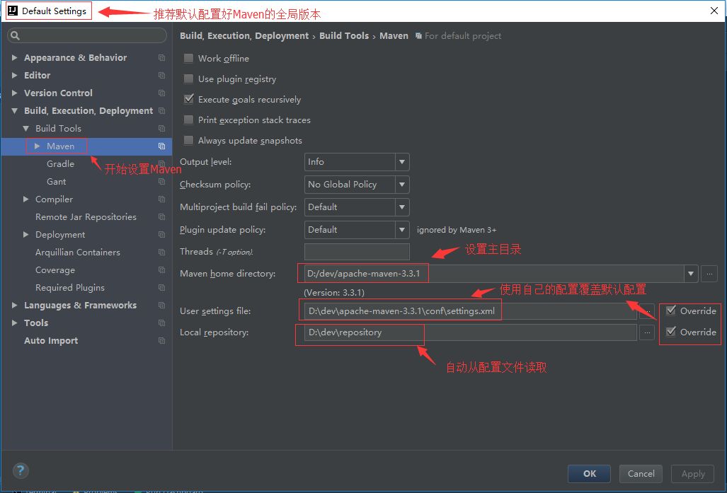 具体步骤:顶部工具栏 File ->Other Settings -> Default Settings -> Build & Tools -> Maven