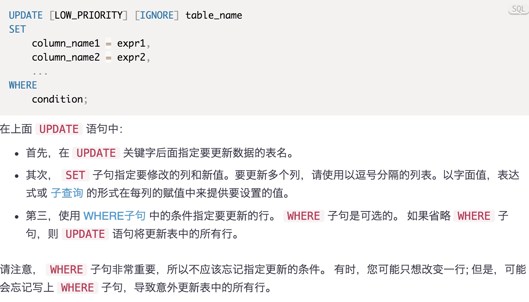 UPDATE多个单列示例