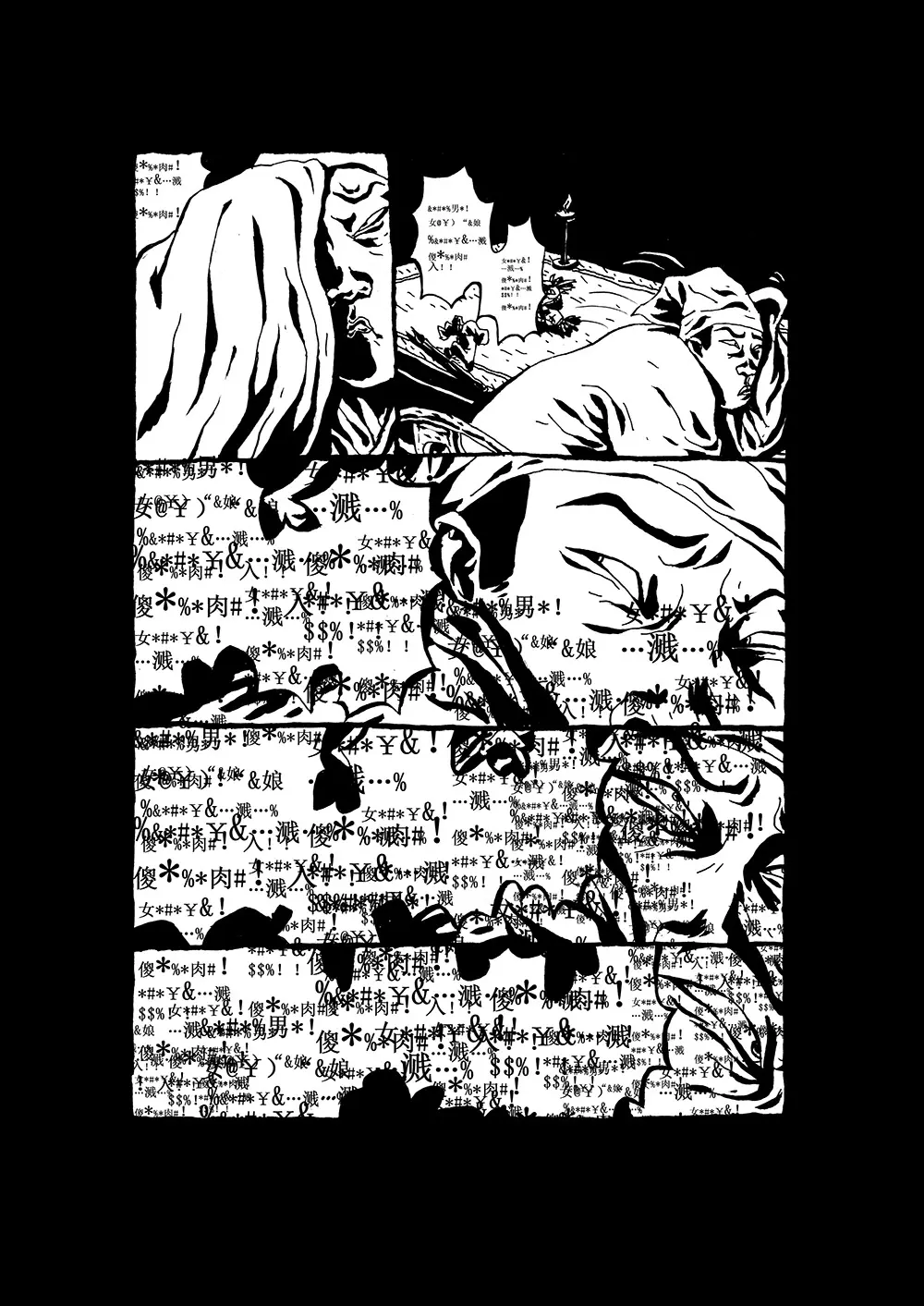 曲文涛:给大家推荐《自噬》那个小短篇,我挺喜欢的,同样是一次自由的即兴创作。尤其是里面有些“疯狂的脏话字符”,最初没打算那样处理,最终的结果很偶然,但我自己挺喜欢。另外,我在站酷上还发过一篇文章,里面对《马皮蚕女》这个故事进行了一些分析,有兴趣可以看看,不过字多无图,但确实是我用心写的。