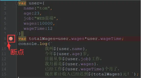 在代码行数右边单击鼠标左键,就可以添加一个断点。