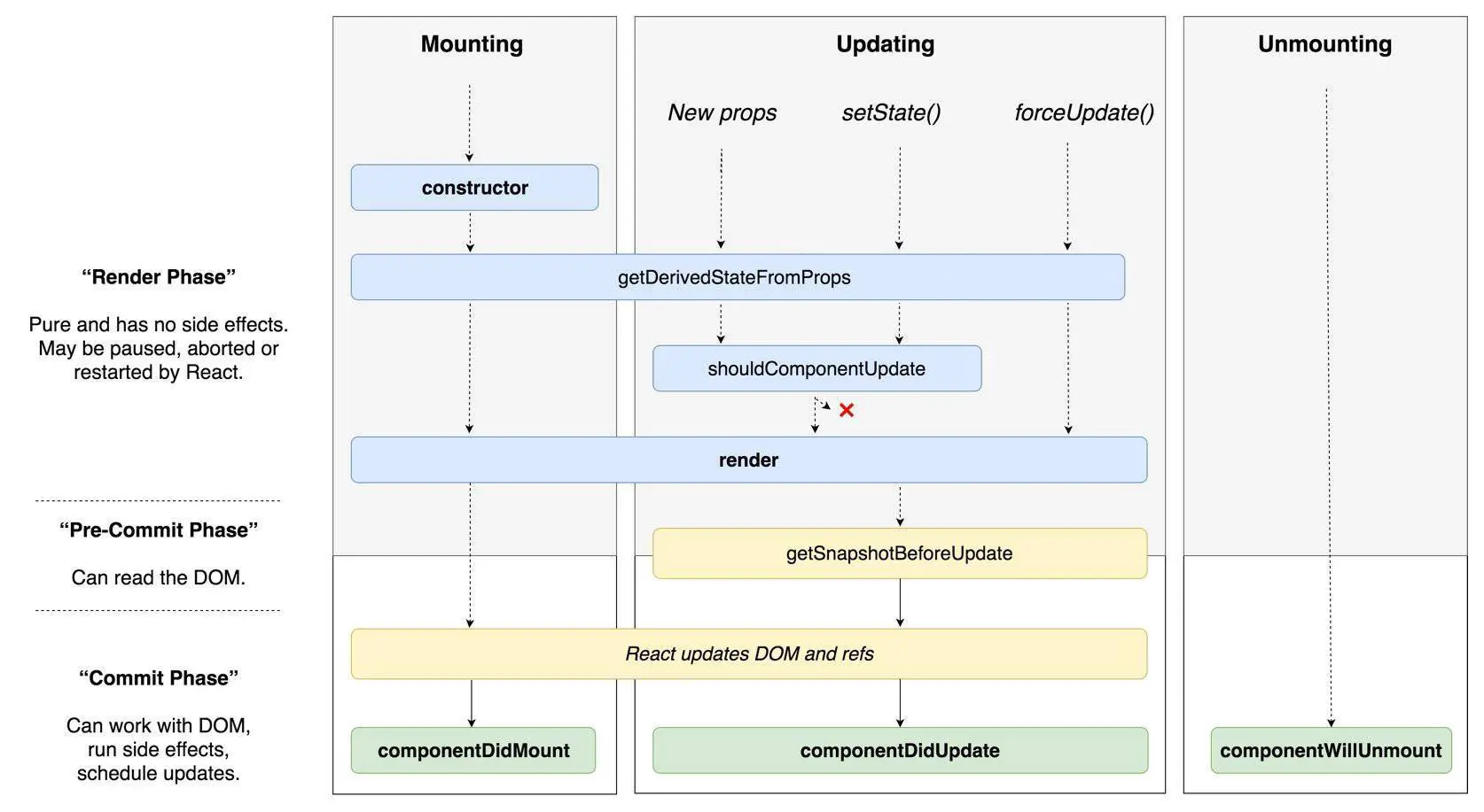 static getDerivedStateFromPropsshouldComponentUpdaterendergetSnapshotBeforeUpdatecomponentDidUpdate