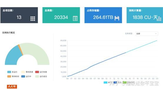 如下图所示,是人人车平台基于阿里云MaxCompute搭建的数据仓库的运行数据。通过阿里云的MaxCompute,人人车平台实现了快速高效搭建数据仓库的愿景。平台所搭建的数据仓库安全可靠,运行平稳,并且在每日数据峰值阶段的表现优异。同时,通过使用阿里云的服务搭建数据仓库,企业节省了很多不必要的开销。
