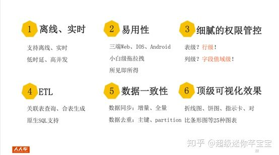 在BI数据平台的设计与搭建中,人人车平台也摸索总结了很多经验: