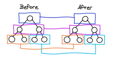 一篇相当经典的文章React’s diff algorithm中的图,react的diff其实和vue的diff大同小异。所以这张图能很好的解释过程。