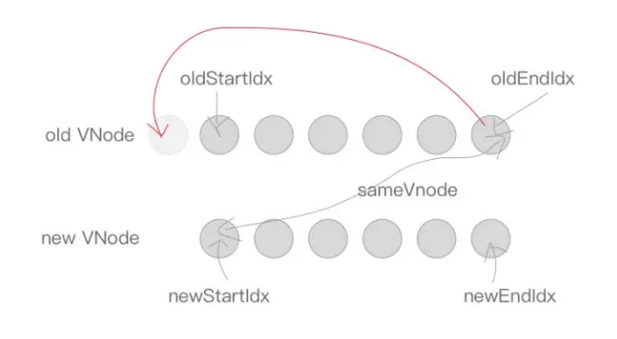 如果oldEndVnode与newStartVnode满足sameVnode,即sameVnode(oldEndVnode, newStartVnode)。