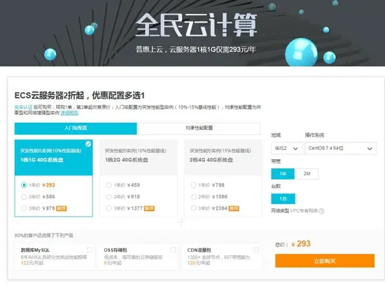 阿里云全民云计算云服务器2折起 只需293元/年 技术大佬 2019-02-28 406 阅读1分钟 阿里云全民云计算ECS云服务器2折起 只需293元/年,买3年只要879元。ECS云服务器2折起,优惠配置多选1。普惠上云,云服务器1核1G仅需293元/年。购买阿里云产品前,请先领取阿里云代金券,享受折上折优惠。