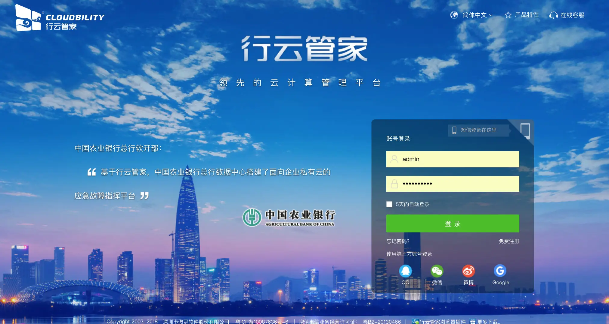 登录行云管家,支持QQ、微信、微博、Google等第三方账号