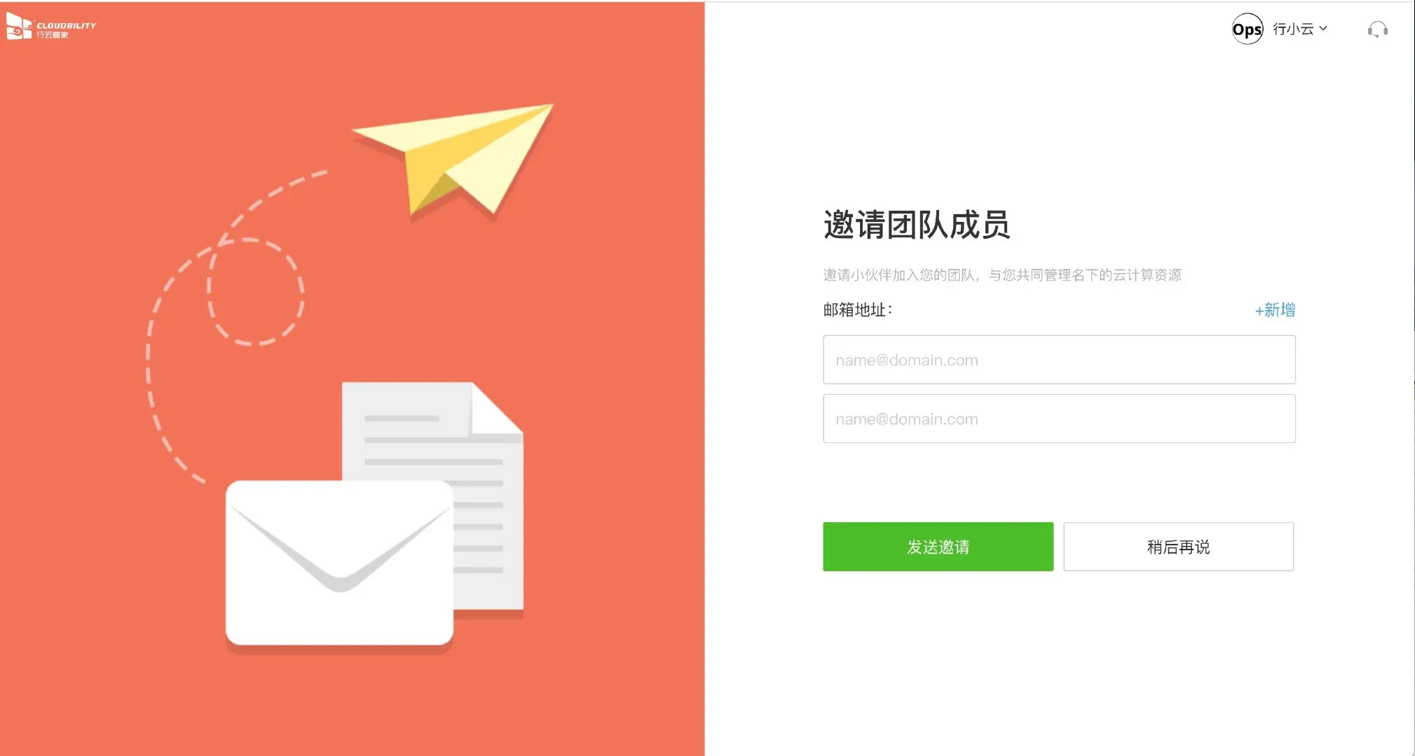 如果有团队成员,可在此添加成员邮箱进行邀请,如果没有可点击稍后再说。