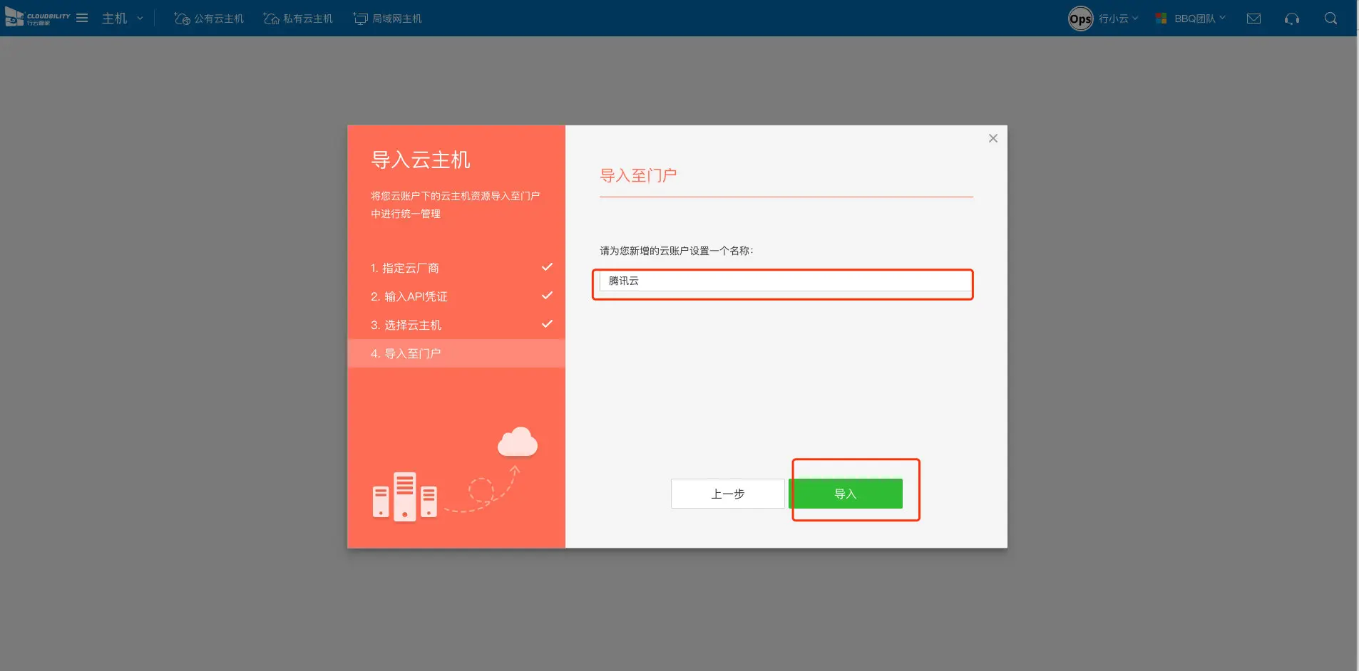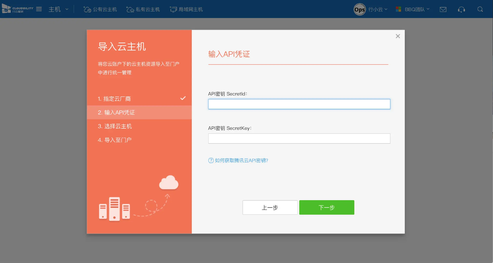 选择腾讯云并通过API凭证将腾讯云主机导入到行云管家中进行管理。