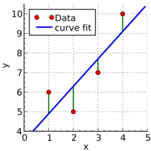 最小二乘法也称作最小平方法, 最常用的是普通最小二乘法(Ordinary Least Square) ,它是一种数学中的优化方法,试图找到一个或一组估计值,使得实际值与估计值尽可能相似, 距离最小,目的是通过已有的数据来预测未知数据。一般通过一条多元一次的直线方程来计算,在二维坐标中即二元一次方程。 例如,在二维坐标中, 非常多的点分散在其中,试图绘制一条直线,使得这些分散的点到直线上的距离最小。这里的距离最小并非点到直线的垂直距离最短,而是点到直接的y轴距离最短,即通过该点并与y轴平行的直线,点到该y轴平行线与直线交点的距离最短。