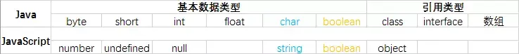 javascript在设计当初借鉴了java的一些东西,我们可以对比他门的数据类型,可以发现许多相似之处,只是js将多个类型归结为一个了。