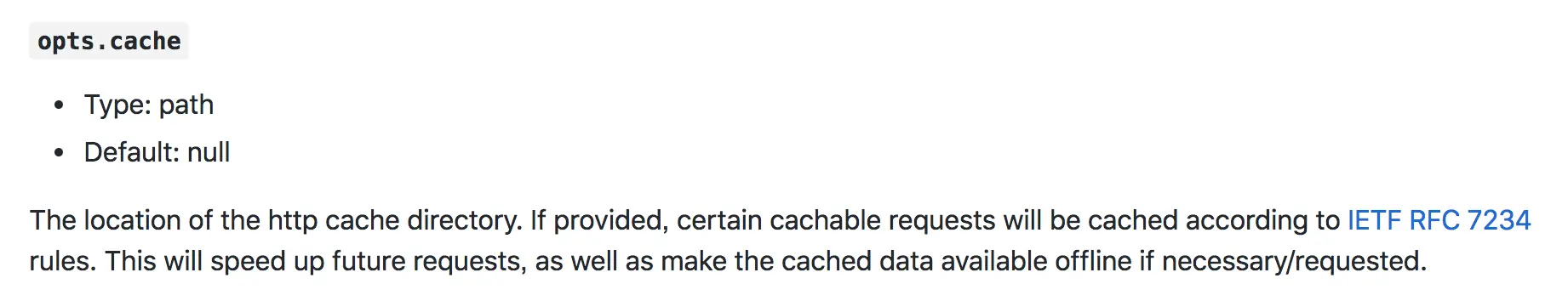 可知,如果设置了 cache 的值(npm中是 ~/.npm/_cacache),便会在给定的路径下创建根据IETF RFC 7234生成的缓存数据。打开那个rfc的地址,发现就是描述 HTTP 缓存的文档,所以本段开头说的 index-v5 下面的文件也就好理解了。