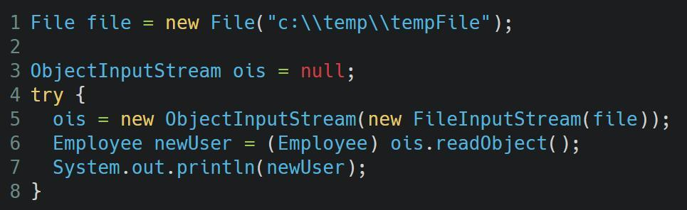 第12行的代码将Employee类的实例,jerry写入了文件tempFile中。