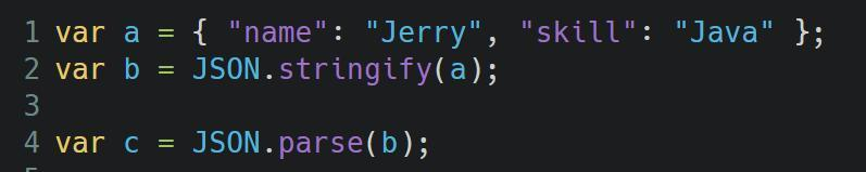 var a = { "name": "Jerry", "skill": "Java" };