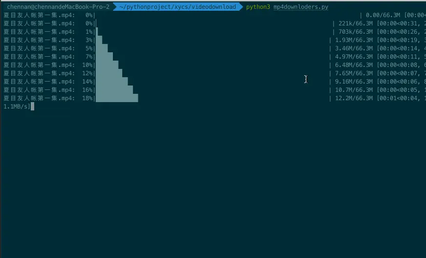 对于单文件的下载我们就完成,但是对于夏目友人帐这个动漫来说不只有一集,如果我们下载一个系列的话,我们就得使用并发了,这里我使用aiohttp把上面的代码改成并发的版本。