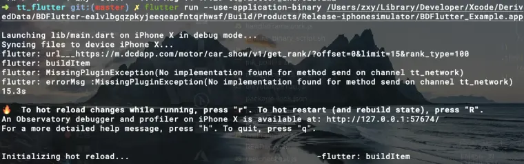 如果是使用编译好的 app 来运行,可以直接使用 r/R 来实现热刷新/热重启。如果使用 Xcode 运行项目,需要先使用命令: flutter attach --debug-port=57674 。