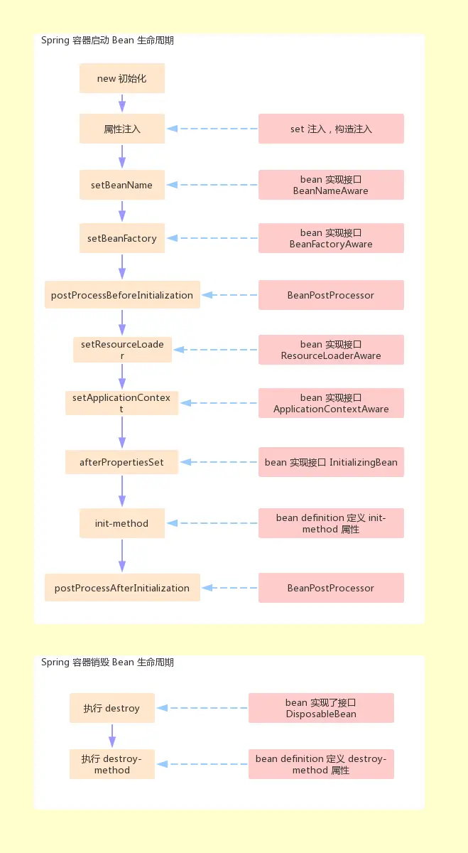BeanFactoryPostProcessor是ApplicationContext在 BeanFactory 完成创建后对其进行后置处理的接口BeanPostProcessor是BeanFactory在 Bean 完成实例化对其进行的后置处理接口